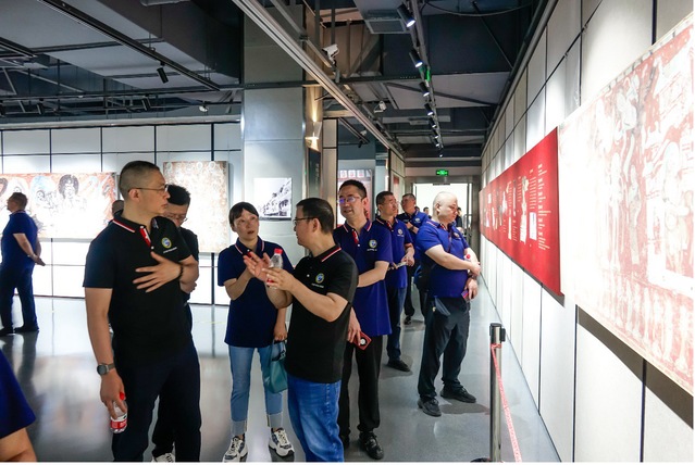 在启用仪式之后,校友们步行至图书馆正门,参观了“以非遗为名 与传承和创新对话——敦煌·彝绣联合展”,世界文化遗产敦煌+非物质文化遗产彝绣的文创创作,为中华优秀传统文化的传承与创新作出积极探索。展览将敦煌壁画艺术中的传统纹样与彝绣相结合,创作出的鹿王本生”“敦煌飞天”“敦煌祥云等系列精美彝绣作品。参观过程中,经介绍,校友们也了解到色情导航 对南华县结对子帮扶情况,以及学校在彝绣产业扶持中取得的成效。
