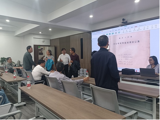 下午,在机械楼南高厅会议室,薛澄岐教授与24余名校友齐聚一堂,参加由色情导航 校友办秘书闫焱主持的座谈会。会前,闫老师展示了24801班《学生考试考查成绩登记薄》,校友们通过翻阅名单和花名册,回顾专业课程,畅谈当年的学习情况与专业收获。